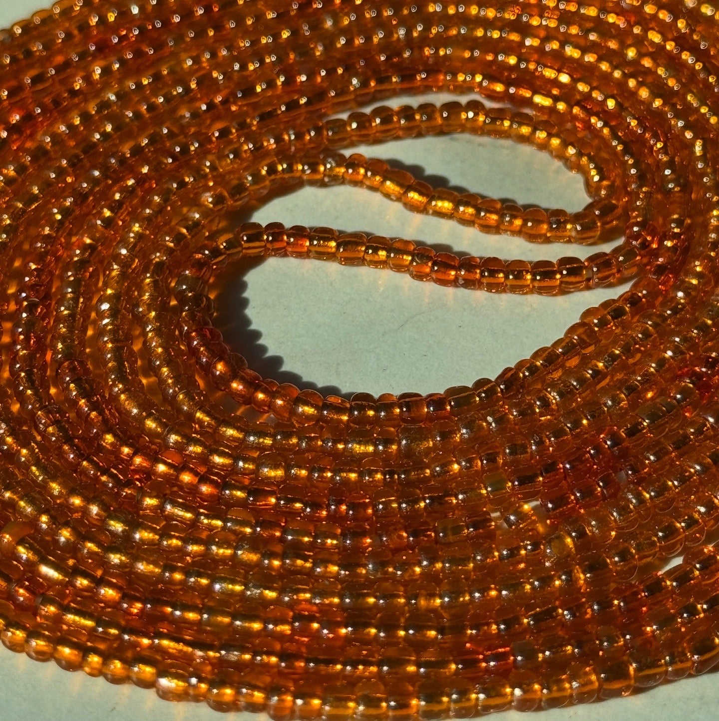 A Waist Bead with amber orange beads.
